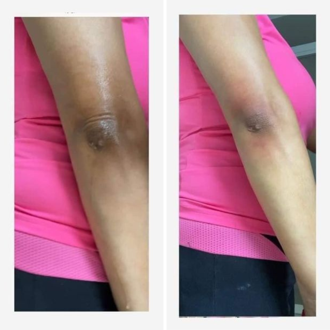 La textura es súper liviana y huele riquísimo. Mis codos mejoraron muchísimo, ya no están oscuros como antes